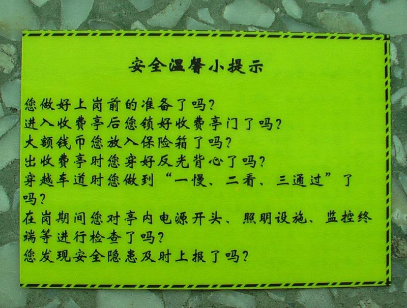 在全國第八個(gè)“安全生產(chǎn)月”期間,110國道沙城收費(fèi)站采取一系列有效措施,確保“安全生產(chǎn)月”活動(dòng)取得良好效果。