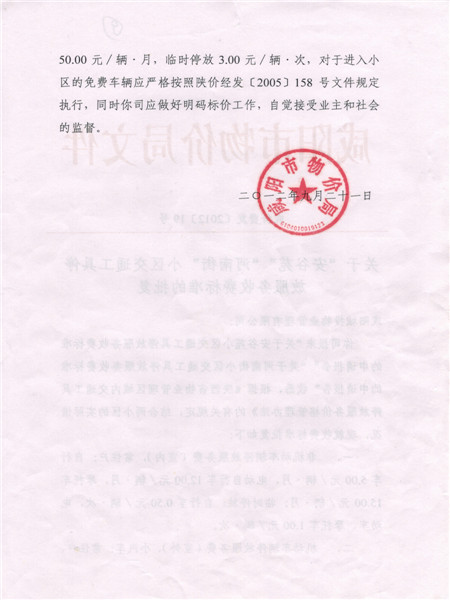 車(chē)輛收費(fèi)批文