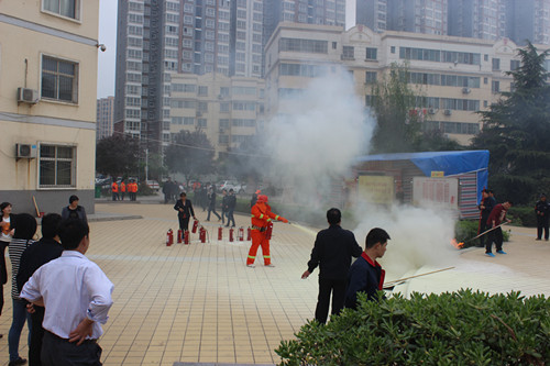 為了嚴格貫徹落實省市對于安全管理工作的相關規(guī)定,加強小區(qū)消防安全管理工作,進一步強化全體員工消防意識,增強防火自救能力,杜絕重大特大火災事故的發(fā)生,為業(yè)主營造一個良好安全的居住環(huán)境。4月27日下午3時在安谷苑小區(qū)廣場,物業(yè)公司聯(lián)合消防維保單位舉辦了以“ 預防為主,消防結合”為主題的消防演練活動。物業(yè)公司領導班子,員工代表,維保人員,業(yè)主代表共計40余人參加了本次演習。