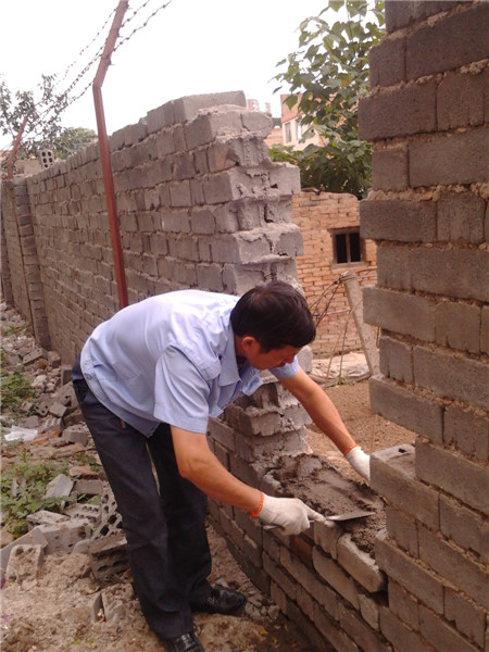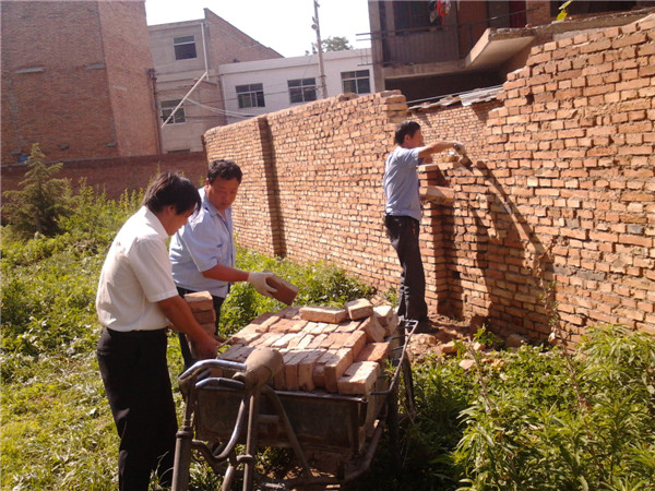 保衛(wèi)小區(qū)安全,服務(wù)中心修補倒塌圍墻