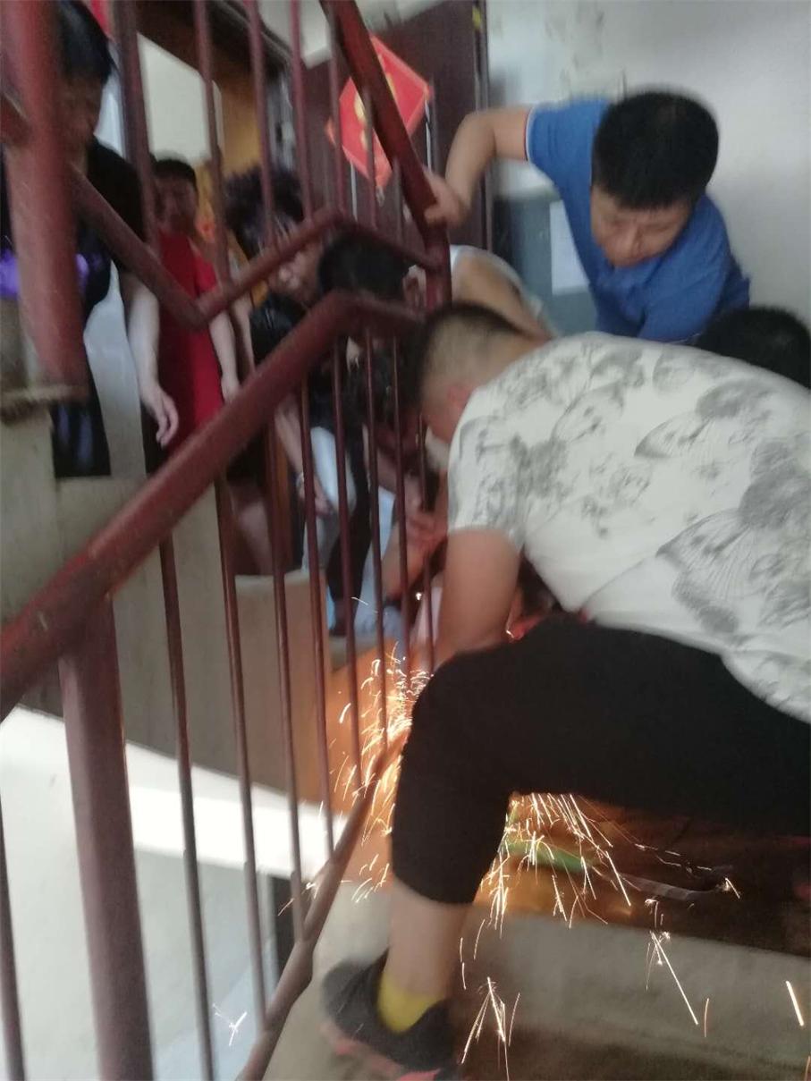 為避免孩子再次受到傷害,維修人員事先對(duì)小男孩的頭部做了適當(dāng)?shù)谋Wo(hù),隨后,用切割機(jī)將護(hù)欄切割開,隨著“咔嚓”兩聲輕響,一分鐘不到,欄桿鋼條兩端被割斷。5點(diǎn)25分,小女孩毫發(fā)未損,安全脫身。所有的人那顆懸著的心總算放了下來。